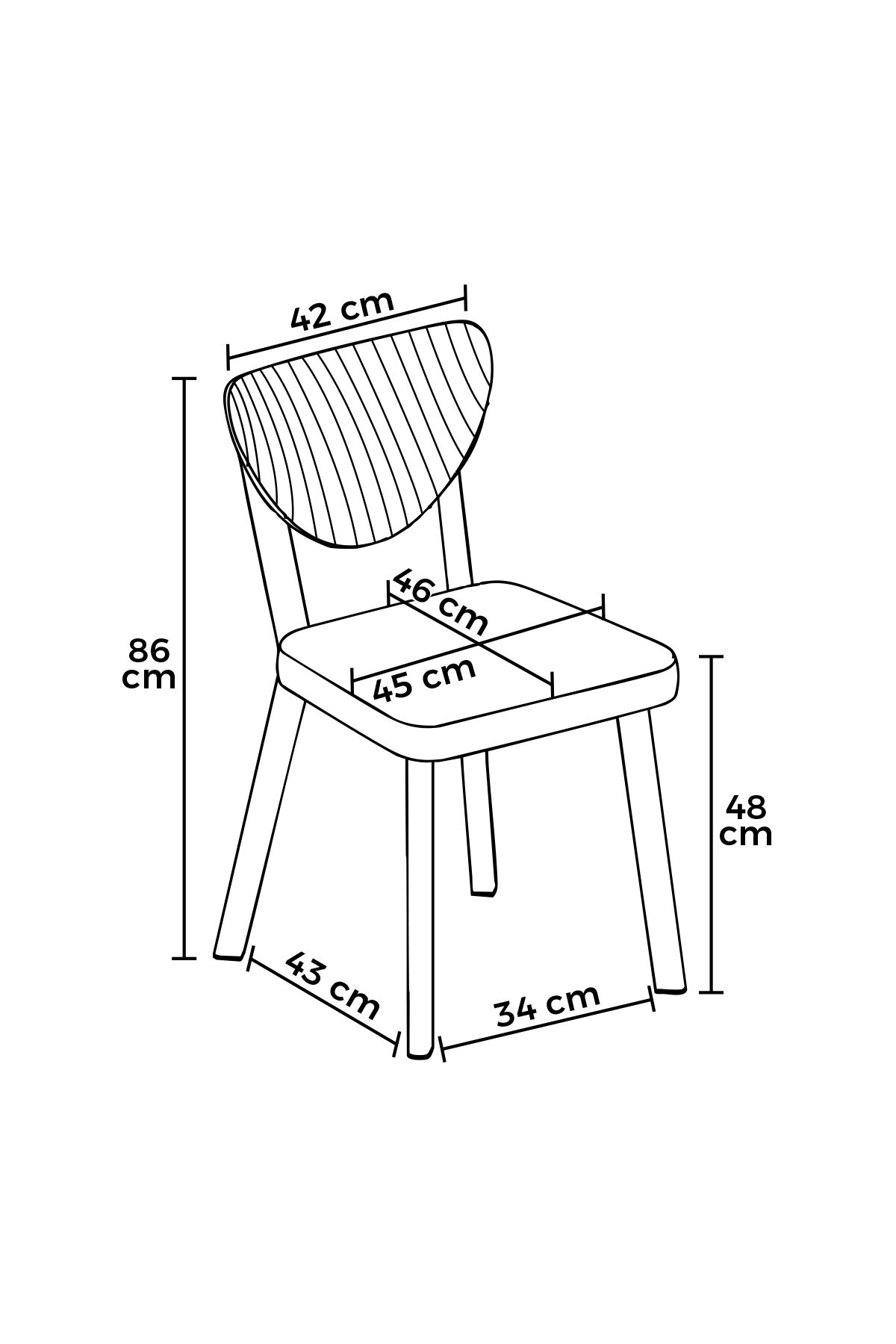 - Width: 45 cm Height: 86 cm Depth: 46 cm (4 Pieces)