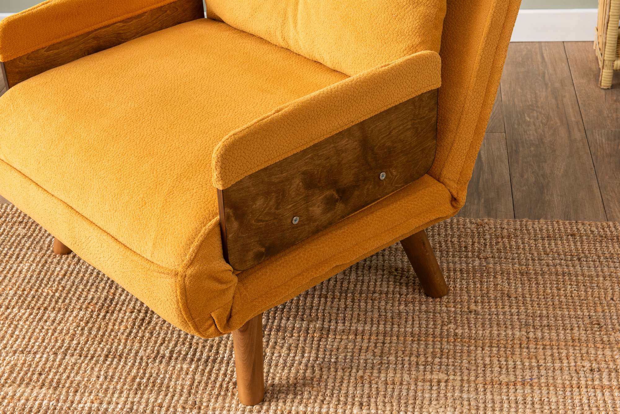 - Body Material: Metal Frame, Wooden Arm