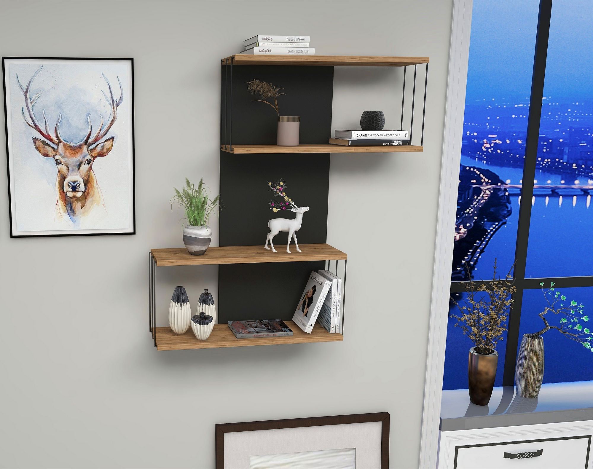 The combination of anthracite and oak colors adds a touch of elegance and sophistication to any space. Whether you have a contemporary or traditional interior, this Wall Shelf seamlessly blends in, enhancing the overall aesthetic appeal of your room.