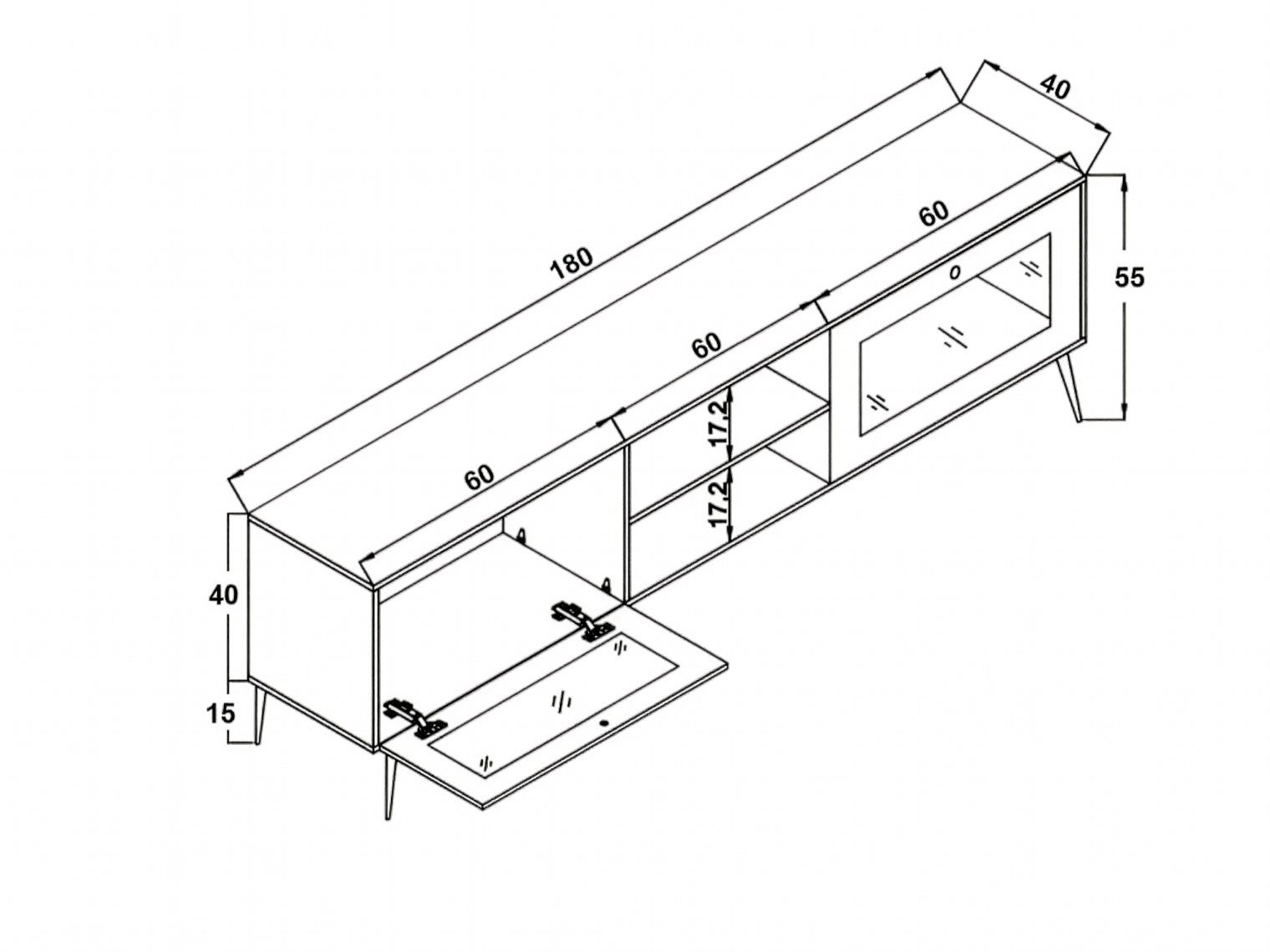 Crafted with precision and attention to detail, our Oak TV stand is designed to withstand daily use and last for years to come. The 15 cm leg height provides stability and ensures that your TV is securely in place. With a width of 180 cm, height of 55 cm, and depth of 40 cm, this TV stand is the perfect size for most living rooms.