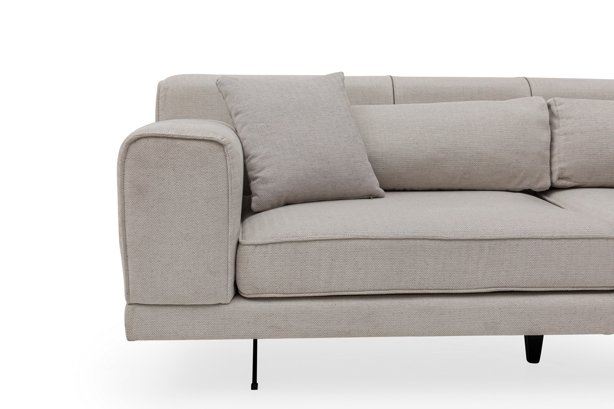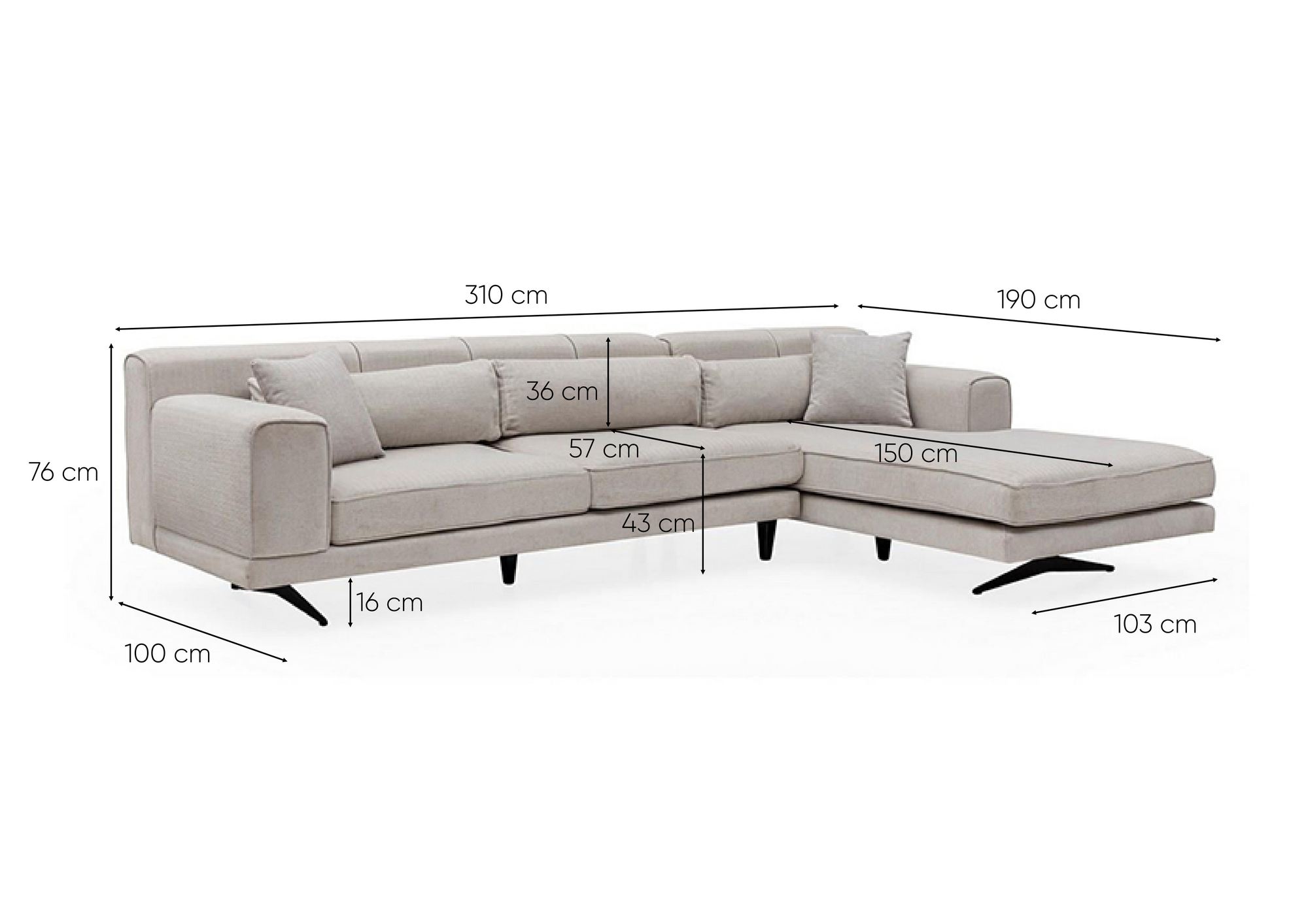 Add a touch of elegance and sophistication to your home with our Corner Sofa. Its solid color in beige complements any interior decor, whether it’s industrial or Scandinavian. The sleek and modern design, combined with the matt black metal legs, creates a statement piece that will impress your guests.