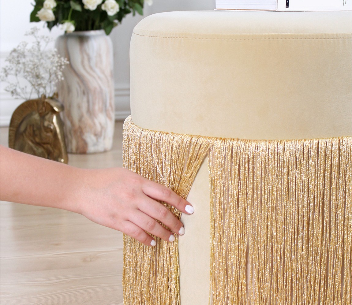 Introducing our luxurious and captivating Gold Velvet Pouffe, a must-have addition to your home decor.