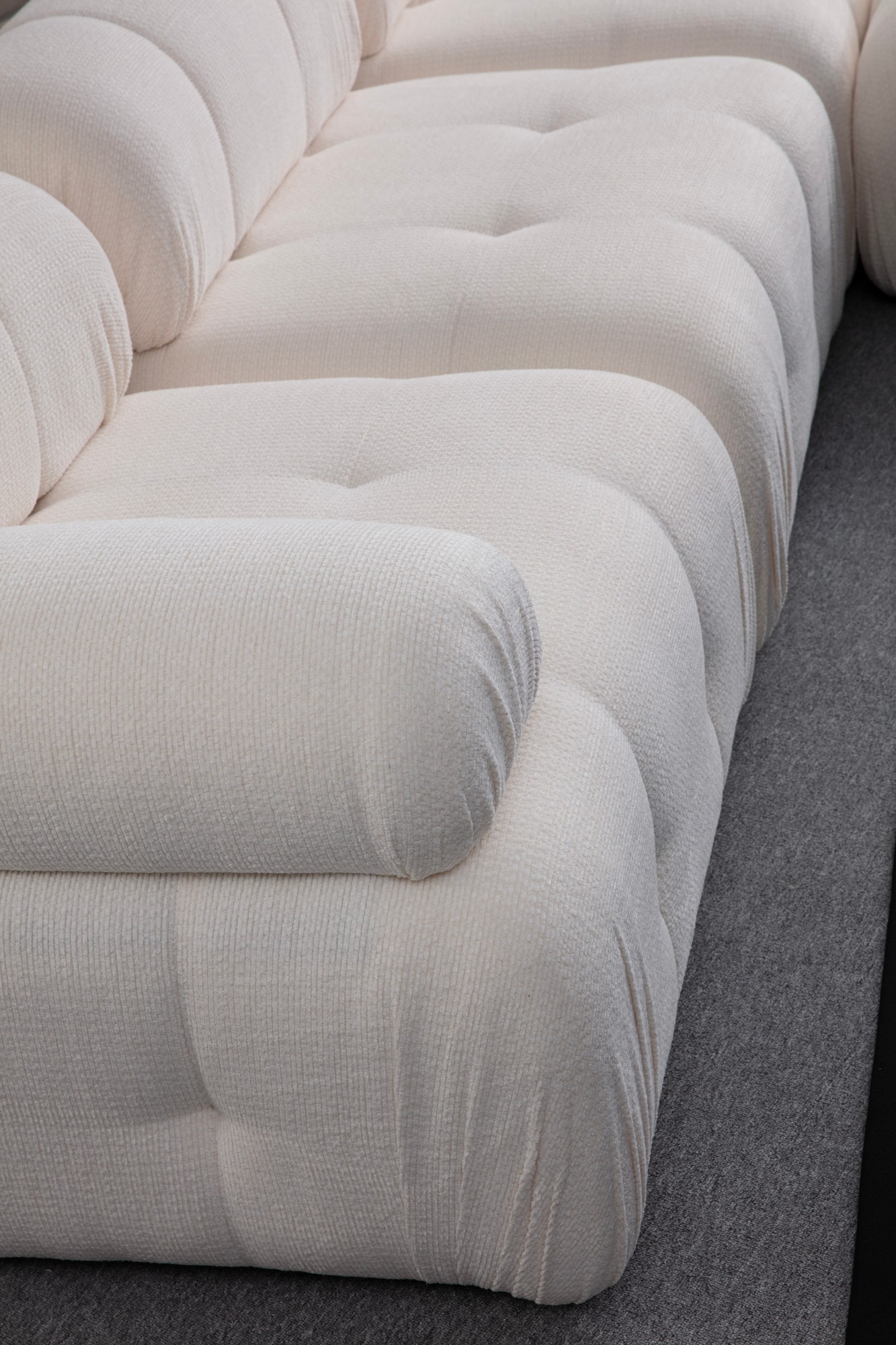 Crafted with a combination of beech wood and chipboard, this sofa is not only durable but also exudes elegance. The 100% polyester fabric in a crisp white color adds a touch of sophistication to any room.