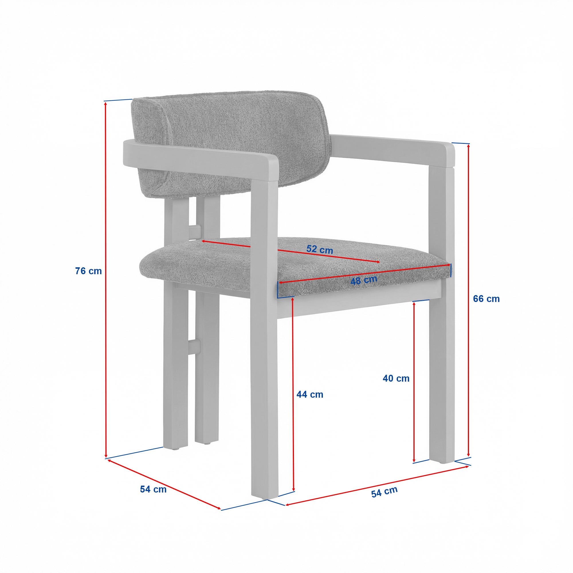 • Seat Depth: 52 cm, Seat Height: 44 cm, Seat Width: 48 cm